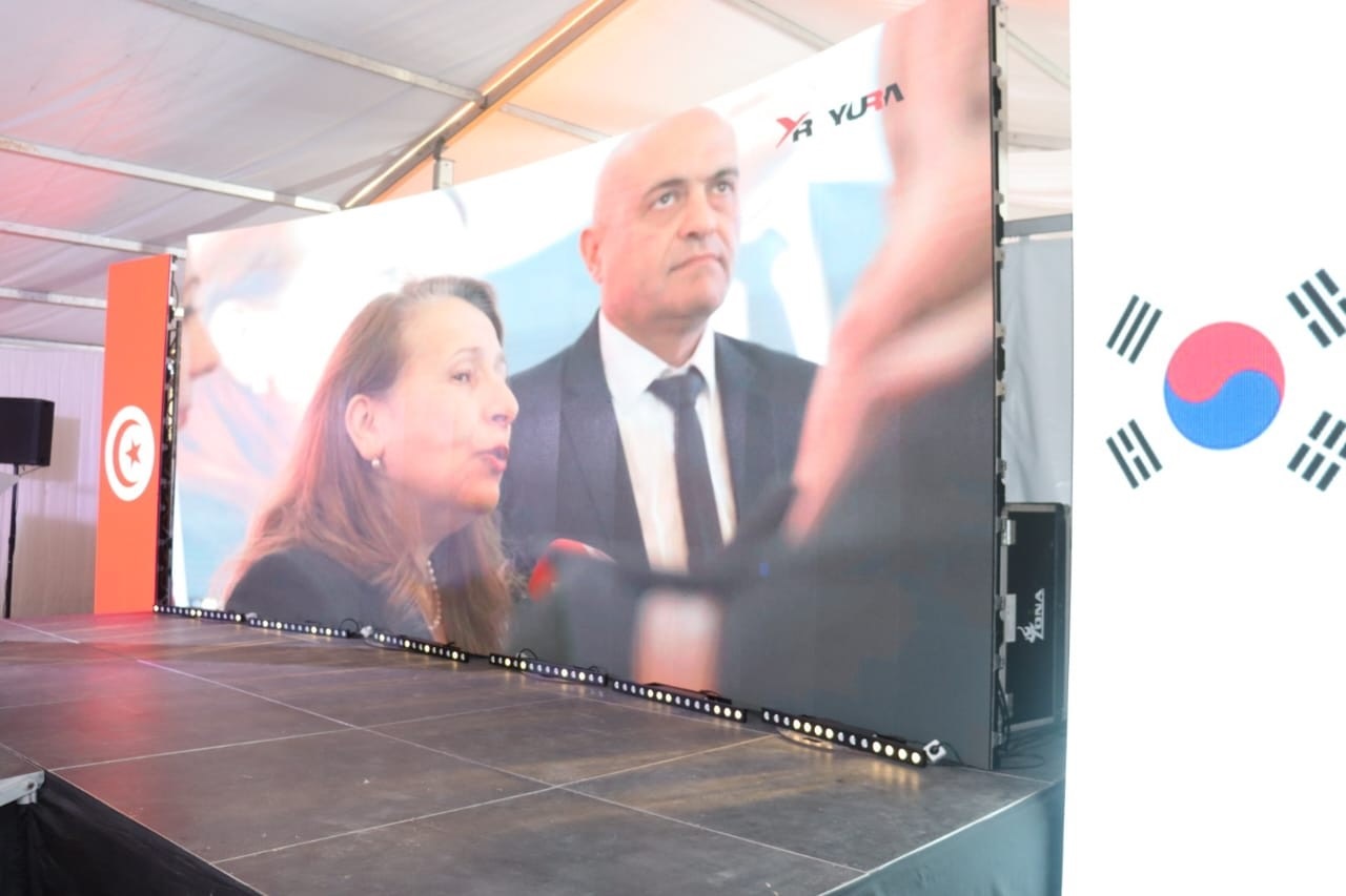 أشرفت وزيرة الصناعة والمناجم والطاقة السيدة فاطمة الثابت شيبوب، بمعية والي الجهة السيد ذاكر البرقاوي وسفير كوريا الجنوبية في تونس السيد” Lea Tae Won” والرئيس التنفيذي للمجمع السيد Park Dongil ومدير عام فرع الشركة في تونس السيد Kim Jong Gu وثلّة من الإطارات .